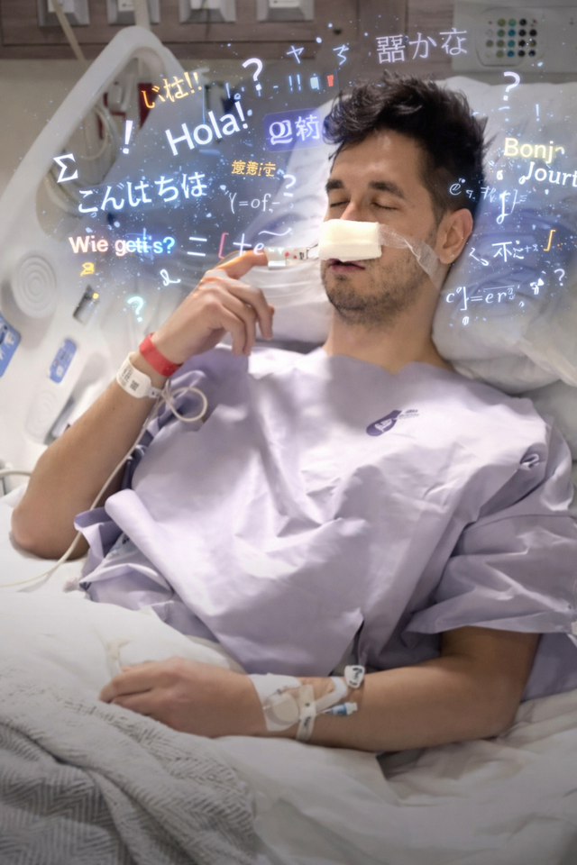 마취에서 깬 후 유창한 외국어를 구사하는 스티븐 체이스(33·남). SNS 사진에 AI 이미지 합성.