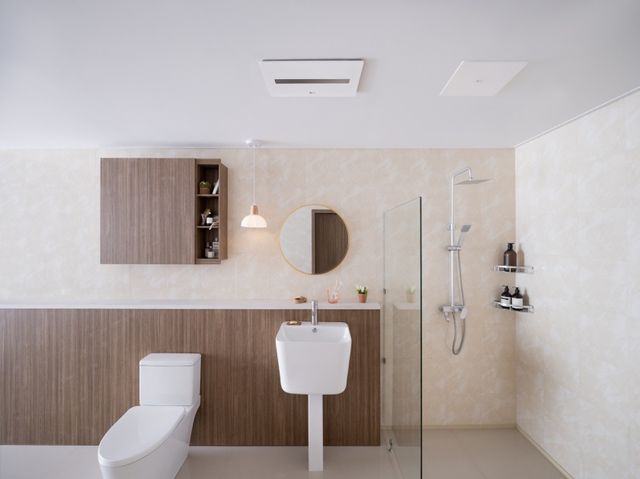 핵심 기능인 공간 케어 모드는 내장된 센서가 욕실 내 온도와 습도를 실시간으로 파악해 구동된다. 겨울철 낮은 온도에서는 온풍을 가동해 미리 욕실을 데우고, 샤워 후 습도가 높아지면 송풍과 환기 기능을 병행해 눅눅함을 제거한다. 설정된 기준치인 온도 22도와 습도 50%에 도달하면 기기는 스스로 대기 상태로 전환되어 불필요한 에너지 소비를 줄인다. 듀얼 배기 시스템은 본체에 추가 배기팬을 탑재해 기존 단일 팬 구조보다 빠른 공기 순환을 유도하며, 전원이 꺼진 상태에서도 외부 오염 물질이 내부로 들어오지 못하도록 역류 방지 장치를 강화했다.