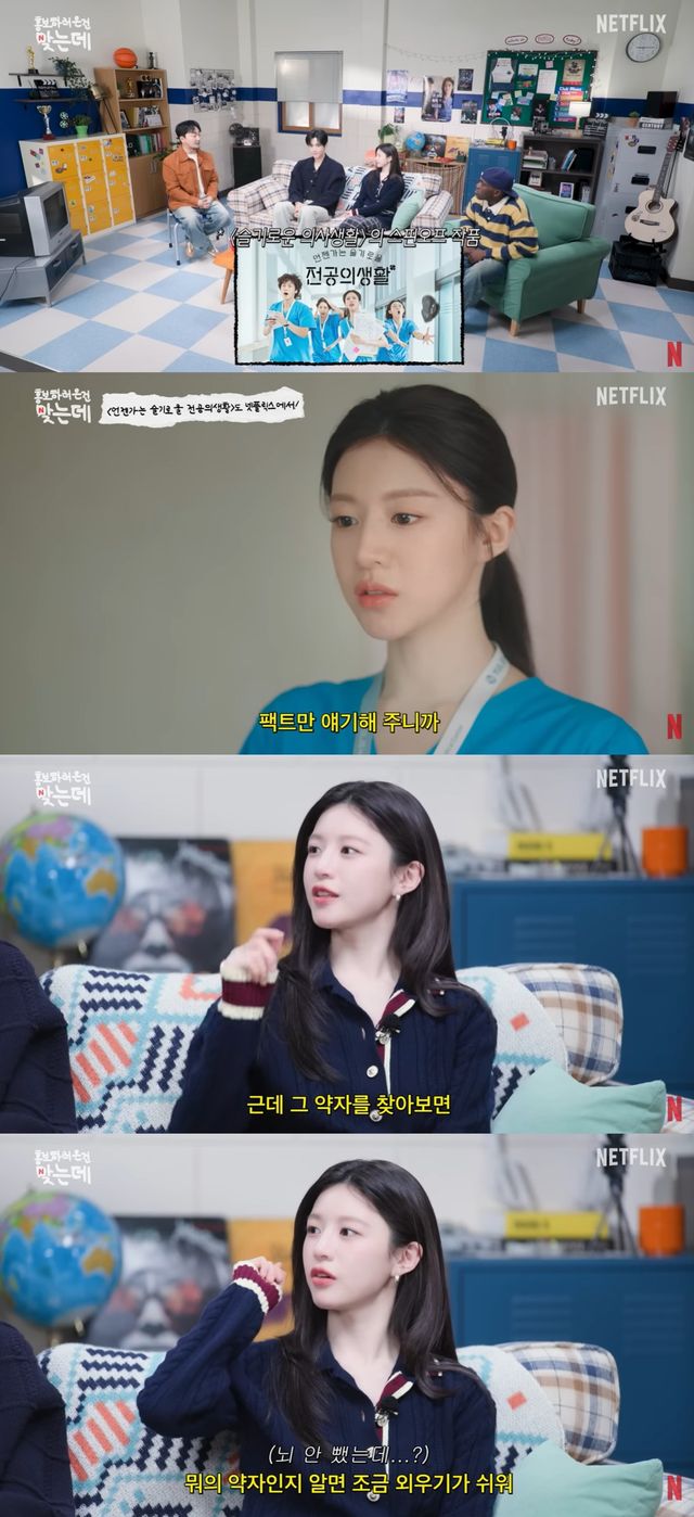 유병재는 "의학 용어 엄청 많이 나오면 힘들지 않나"라고 질문했고, 고윤정은 "뇌 빼고 외우면 괜찮다. 그 약자를 찾으면 무슨 약자인지 안다. 그럼 외우기가 좀 쉽다. 기관 같은 걸 알게 된다"고 이야기해 모두를 감탄케 했다.