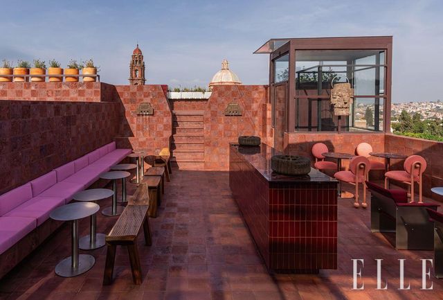 」멕시코시티를 기반으로 활동하는 디자이너 안드레스 구티에레즈는 색과 볼륨, 재료의 물성을 바탕으로 라틴아메리카적 감각이 깃든 공간을 만들어왔다. 그가 설계한 루프 톱 바 토나나(Tonana)는 칵테일을 통해 대지의 기억과 조상 대대로 전해진 여성들의 지혜를 기념하는 장소다. ‘신성한 어머니’를 뜻하는 고대 언어 토난친(Tonantzin)에서 이름을 따온 이 공간에는 고대의 상징이 깃들어 있다. 바닥과 벽을 덮은 붉은 멕시코 화산석 마감, 아즈텍 신화 속 대지의 여신을 상징하는 악어 형상의 가구, 물의 여신을 암시하는 분수가 어우러져 성스러움과 세속성, 빛과 그림자가 교차하는 분위기를 완성한다.