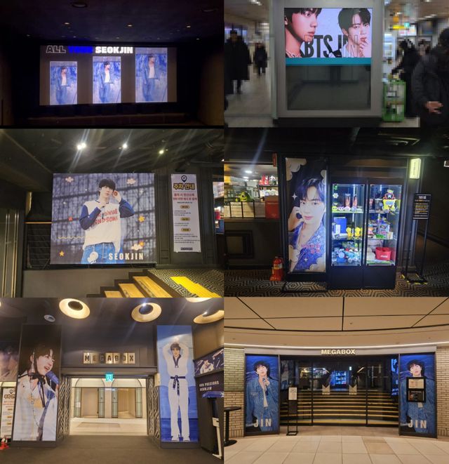 해외에서 시작된 여운은 국내에서도 이어졌다. 서울 강남 센트럴시티 메가박스 브랜드관 ‘#진BTS관’이 1월 15일부터 2월 14일까지 한 달간 운영됐다. 로비 메인홀 전체 랩핑을 비롯해 파밀리에 쇼핑몰 출입구, 매점, 티켓박스, 카페테리아 등 관람객 동선 곳곳에서 진의 이미지를 만날 수 있도록 구성됐다.