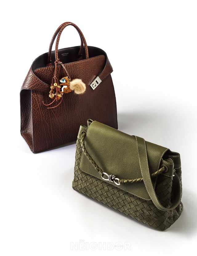 페라가모는 아이코닉한 허그 백을 남성적 실루엣으로 재해석해 넉넉한 크기의 토트백으로 제안한다. 사이드 밴드, 간치니 버클 등 시그너처 디테일은 유지하면서도 유니크한 비율과 크랙 디테일 브라운 레더가 포멀한 무드를 자아낸다. 활동성을 놓칠 수 없다면 보테가 베네타의 안디아모 메신저백이 좋은 대안이다. 길이 조절과 탈착 가능한 크로스 스트랩으로 다양한 스타일로 연출할 수 있으며, 세련된 인트레치아토 위빙까지 더해 실용성과 디자인을 동시에 만족시킨다.