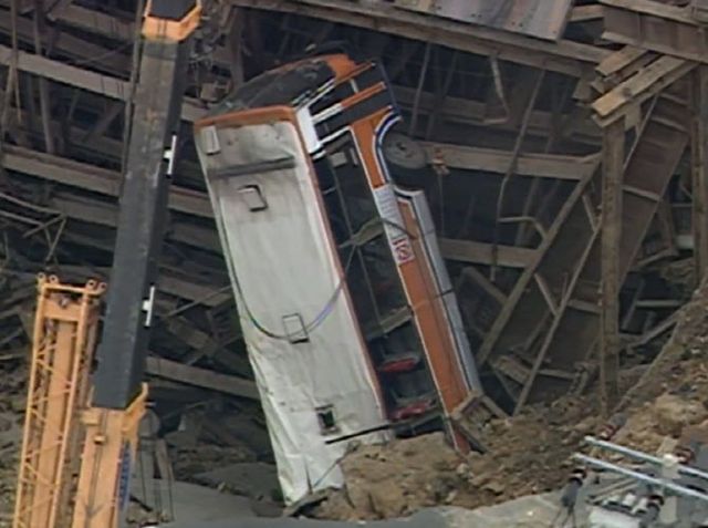 사고는 대구 중구 동산동 신남네거리 도시철도 2호선 공사현장에서 발생했다. 오전 5시 12분 공사를 위해 임시로 만들어놓은 복공판이 내려앉았는데, 하필 위에 정차해 있던 버스가 추락한 것이다.