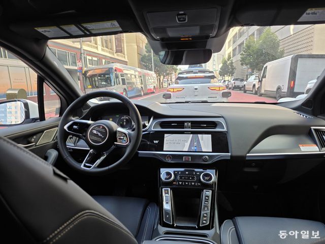 15일(현지 시간) 미국 샌프란시스코에서 탑승한 자율주행 로보택시 웨이모가 자율주행으로 운전하는 모습. 탑승한 웨이모 앞에는 또 다른 웨이모 차량이 운행 중이었다. 현재 미국 10여 곳에서 웨이모가 운행 중이며, 샌프란시스코에서만 1000여 대의 웨이모가 운영되고 있다. 샌프란시스코=최지원 기자 jwchoi@donga.com