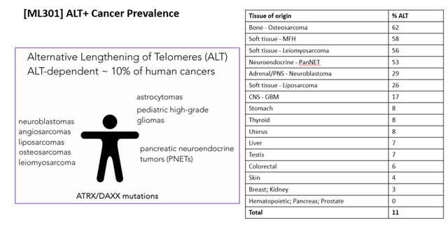 반면 암세포는 텔로머라제라고 불리는 효소를 지속 생산해 텔로미어를 유지한다. 즉 세포의 수명이 줄지않아 죽지 않는다. ALT 암은 항암제 공격을 받아도 텔로머라제 생산하는 대체 채널을 가지고 있어 죽지 않는다. ALT 암은 전체 암의 10%로 △골육종 △췌장신경내분비종양 △백혈병 △림프종 △흑생종 △간암 △폐암 등에서 나타난다.