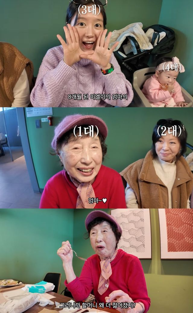 이날 이수민은 딸 이엘이와 엄마, 자신의 할머니까지 4대가 만난 하루를 공개했다. 원혁은 "이엘이의 엄마의, 엄마의, 엄마"라며 등장인물을 소개해 눈길을 끈다.