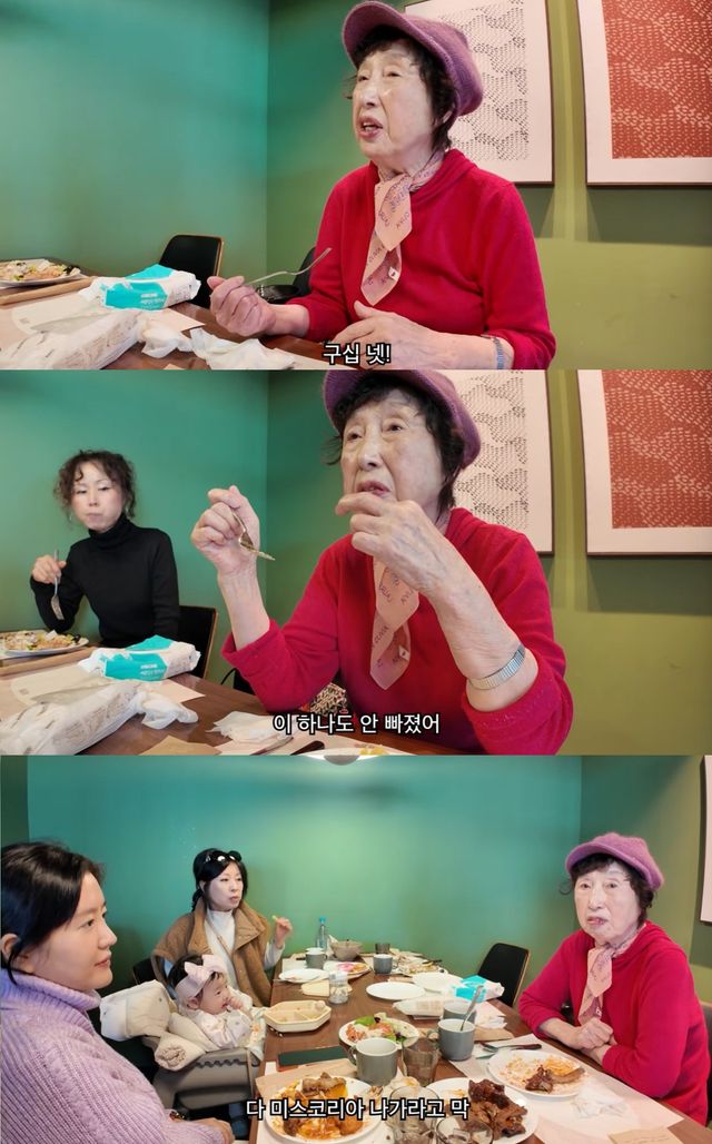 할머니는 "젊었을 때, 20살일 때 미스코리아를 막 뽑았다. 다들 미스코리아에 나가라더라"며 젊은 시절 미모를 회상했다. 이어 "난 딸들은 미스코리아 나가라는 소리는 하나 못 들었다. 딸 셋인데 하나 예쁘다는 소리 못 들었다"고 덧붙여 웃음을 안겼다.