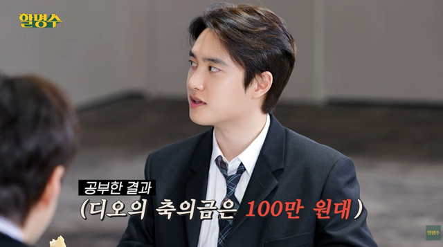 해당 영상에서 박명수는 도경수에게 “김우빈 결혼식 다녀왔냐”며 “축의금 얼마 했냐. 10만원대이냐. 100만원대이냐”고 물었다.