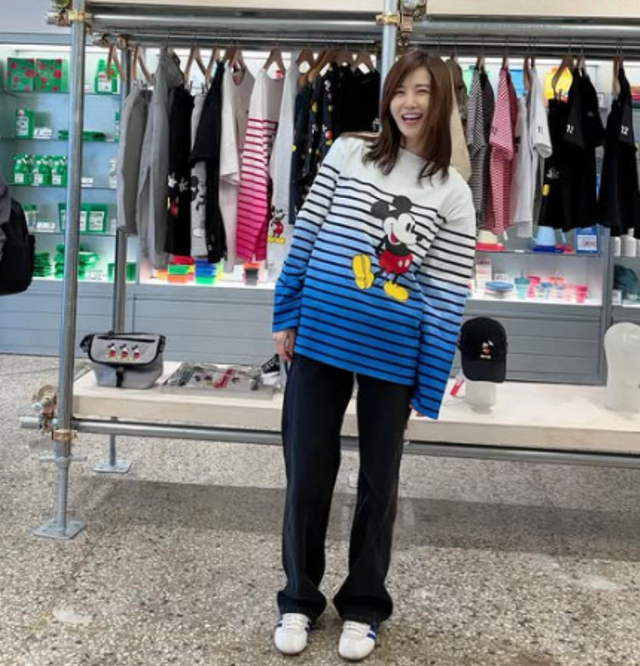 글과 함께 공개한 사진에는 김민지가 미키마우스가 그려진 티셔츠를 입고 환하게 웃고 있는 사진이 담겼다.