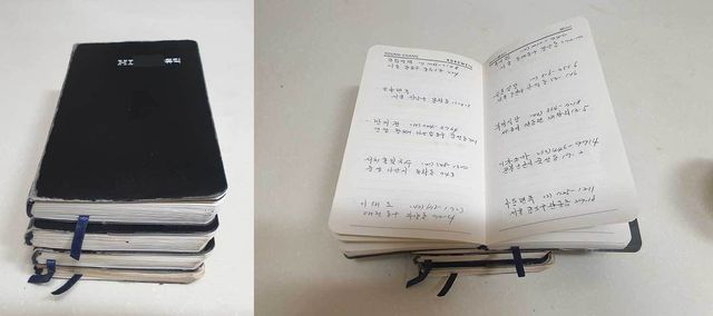 처음 시작은 업무용 수첩에 지인들이 소개해 주는 식당이나 개인적으로 궁금한 곳을 함께 메모했어요. 그때는 우리나라에 인터넷이 처음 보급되고, 온라인 정보라는 게 거의 없는 때여서, 사람에게 정보를 얻었어요. 그렇게 적기 시작한 게 양이 점점 늘어 별도의 수첩에 차례로 기록해 두었어요. 이제 양이 꽤 됩니다.
