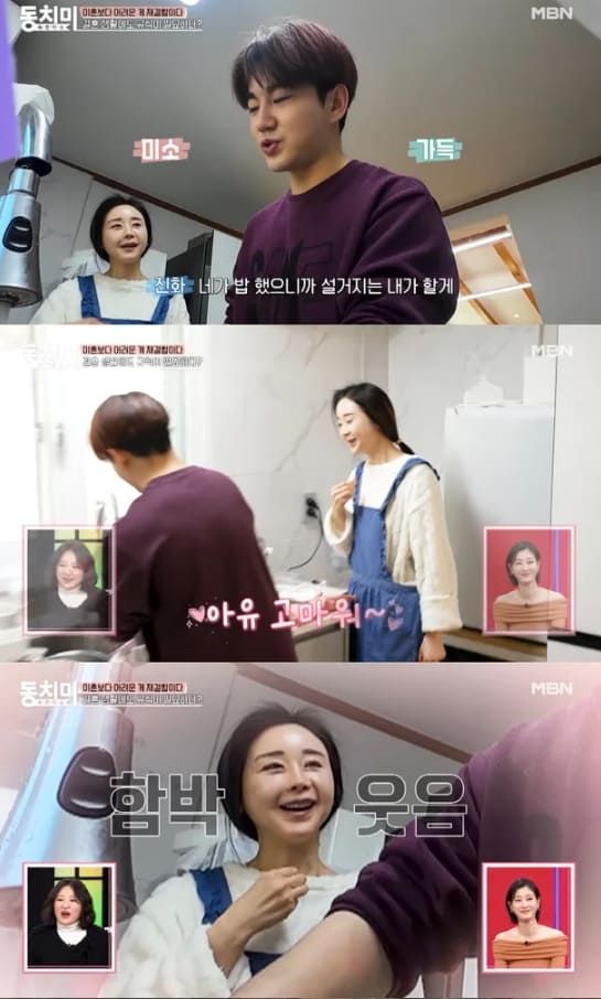함소원은 자신의 집에서 설거지를 하는 진화를 보며 함박 웃음을 지었습니다. 함소원은 "오늘은 네가 설거지 하려고?"라고 물었고 진화는 "네가 밥을 했으니 설거지는 내가 하겠다"라며 손에 물을 묻혔습니다. 함소원은 "고마워~ 진짜 많이 바뀌었네"라며 화답했고 진화는 "서로 바뀌고 노력하는 거지"라고 답해 묘한 분위기를 만들었습니다.