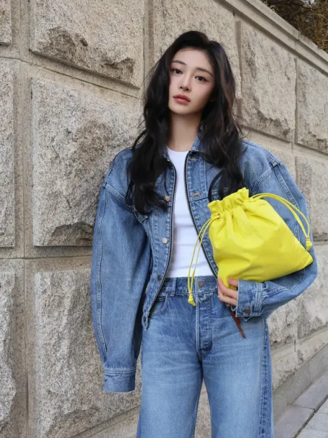 전체적으로 푸른 도화지 위에 냅다 노란색 물감을 쏟아부은 듯한 옐로 드로스트링 백이 이번 룩의 킬링 포인트다. 셀린느(CELINE) 특유의 고급스러운 가죽 질감과 비비드한 개나리색이 만나 데님의 투박함을 단번에 지워버린다. 채도가 높은 액세서리를 하나만 활용해도 무심하게 툭 걸친 옷차림이 단숨에 '공들인 코디'로 격상된다는 사실을 주결경은 너무도 잘 알고 있다.