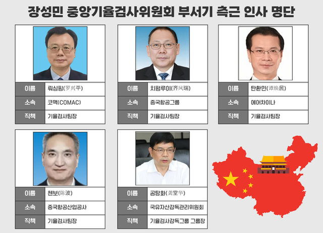 이러한 중앙기율위는 코맥을 비롯한 중국 내 항공사들의 인사도 전부 좌지우지하고 있다. 일례로 지난 2015년 중앙기율위는 진좡릉(金壯龍) 전 코맥 회장을 공금 유용 및 해외 출장비 부당 집행 등을 이유로 적발해 처벌을 내렸다. 당시 진 회장은 기율위의 지적을 즉각 수용하고 곧장 처벌을 수용하면서 간신히 회장직을 지켜냈다. 코맥의 지분율 6.9%를 소유한 중국항공산업공사(AVIC) 전 회장 린쭤밍(林左鳴) 역시 부품 공급망 내 뇌물 수수와 리베이트 혐의로 중앙기율위의 강도 높은 조사를 받은 적 있다. 린쭤밍은 한동안 자리를 지키는 듯 했으나 2018년 건강상의 이유를 들며 돌연 회장직에서 사퇴했다. 중국 현지에선 중국 고위 관료나 국유기업 수장이 임기를 다 채우지 않고 갑자기 사퇴하는 것을 두고 명예로운 퇴진을 빙자한 경질로 보는 시각이 우세하다.