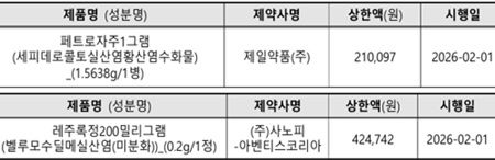 의료적·사회적 필요성이 높다고 평가된 구형흡착탄과 애엽추출물은 제약사 자진인하 신청으로 대체약제 대비 비용효과성이 있다고 평가돼 인하된 약가로 급여를 유지한다.