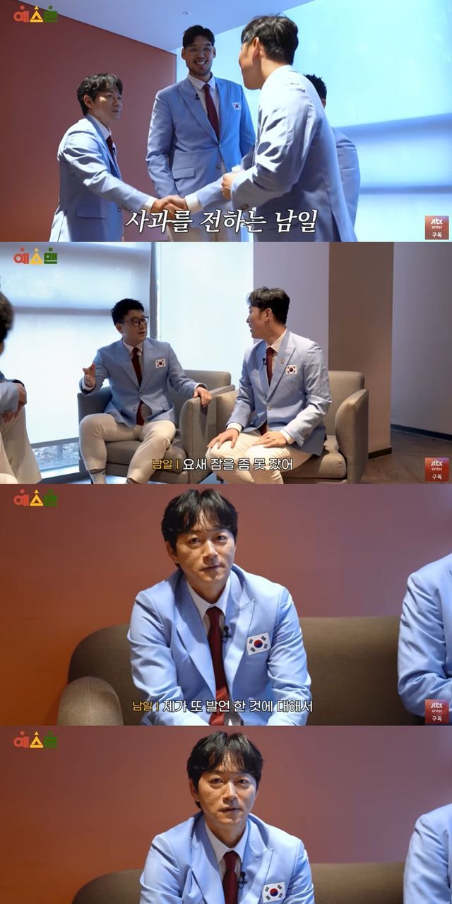 이날 JTBC '예스맨' 대기실에는 김남일을 비롯해 하승진, 이형택이 먼저 자리를 지켰고, 이후 윤석민이 합류했다. 윤석민은 등장과 함께 "본의 아니게..."라며 미안한 기색을 드러냈고, 김남일은 "일단 미안하다"며 사과했다.