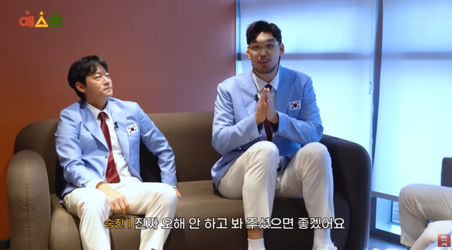 김남일은 윤석민이 등장하자 “미안하다”며 곧장 사과했고, 하승진이 역시 예능적 제스처를 살려 무릎을 꿇으고 사과했다.