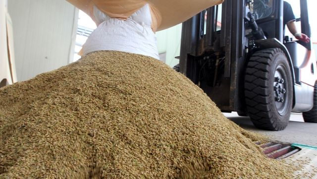 농민들이 갖 수확해온 햅쌀을 저장고에 쏟아 붓고 있다. 기사의 이해를 돕기 위한 사진 / 연합뉴스