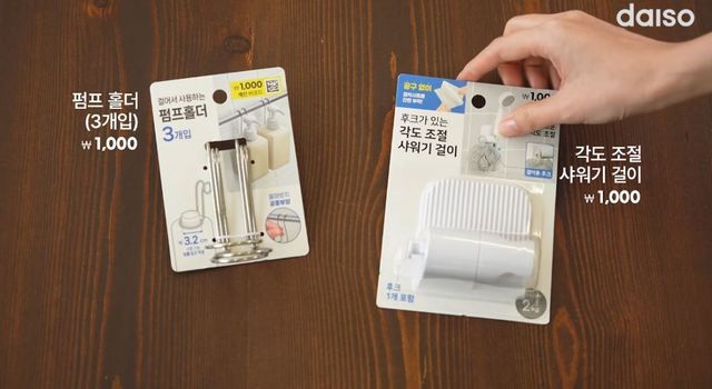 다이소 '펌프 홀더'와 '각도 조절 샤워기 걸이' 제품. / 유튜브 '다이소'