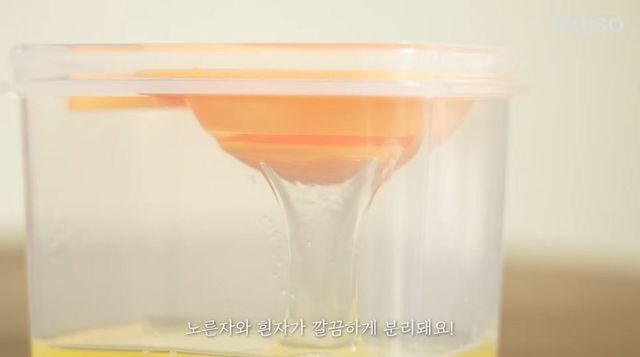 먼저 주방 효율을 높여주는 계란 분리 용기는 뚜껑, 분리기, 본체로 구성돼 있다.