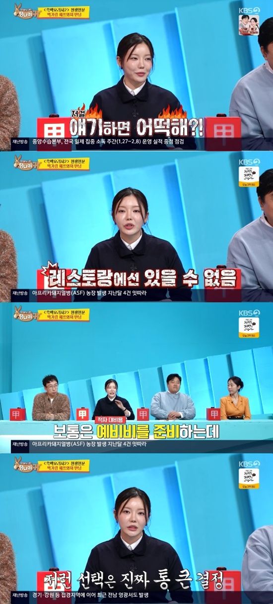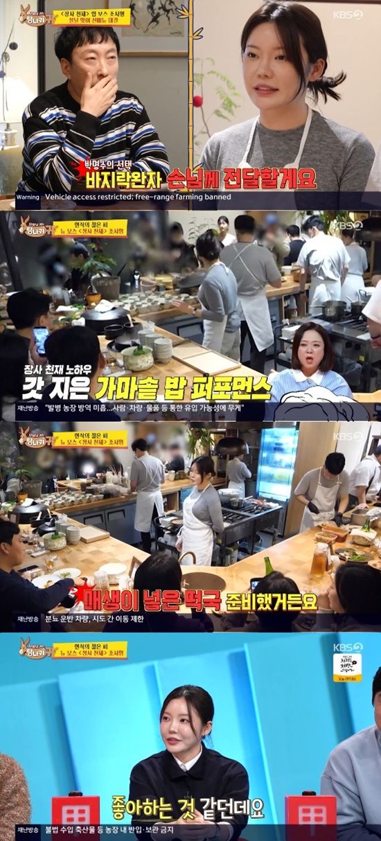 1일 방송된 KBS 2TV '사장님 귀는 당나귀 귀'에서는 조서형과 박가람 셰프가 마주하는 모습이 전파를 탔다.
