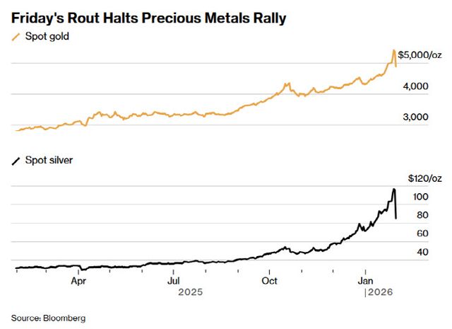 시장은 ‘포물선형’, ‘광란’, ‘거래 불가능’으로 묘사됐다. MKS PAMP SA의 니키 쉴스 금속 전략 책임자는 “2026년 1월은 귀금속 역사상 가장 변동성이 큰 달로 기록될 것”이라고 말했다.