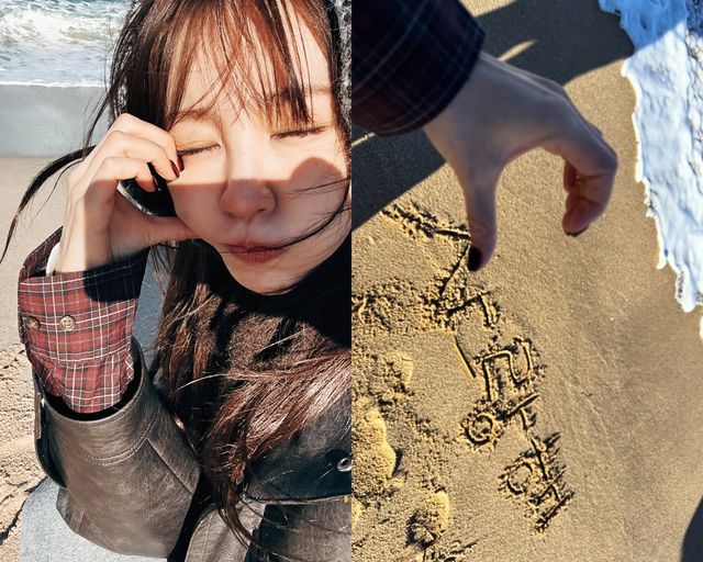 이어 윤은혜는 모래사장에 ‘사랑해’라는 문구를 적어 눈길을 끌었다. 특히 카메라를 향해 반쪽 하트 포즈를 취하며 보는 이들의 궁금증을 자아내기도 했다.