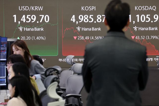 2일 엠피닥터에 따르면 이날 코스피는 전 거래일보다 274.69포인트(5.26%) 내린 4949.67에 거래를 마쳤다. 지난달 27일 종가 기준 사상 처음으로 5000선을 돌파한 후 4거래일 만에 다시 5000선 아래로 밀려난 것이다. 지수는 전장 대비 1.95% 내린 5122.62에 출발한 뒤 낙폭을 빠르게 키웠고, 장중 한때는 5.57% 하락한 4933.58까지 내려가기도 했다.