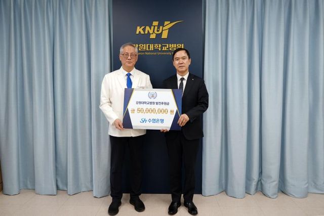 [굿데일리=주성기 기자] Sh수협은행은 강원대학교 병원(이하 “강원대병원”)에 발전기금 5천만원을 전달하며, 지역 의료 인프라 개선에 적극 나선다고 2일 밝혔다.