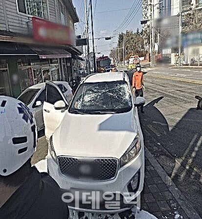 A씨는 차량 주행 중 갑자기 알 수 없는 물체가 날아와 앞유리가 파손됐으며, 물체에 맞은 B씨가 피를 흘리고 있었다고 진술했다.
