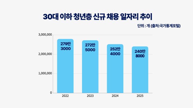 스펙 다단계의 기저에는 갈수록 심화되는 청년 취업난이 자리 잡고 있다. 국가데이터처에 따르면 2025년 2분기 30대 이하 신규 채용은 240만8000개로, 지난해 동기 대비 11만6000개로 감소했다. 2018년 해당 통계가 작성되기 시작한 이래로 가장 낮은 수치이자, 2018년과 비교했을 때 약 44만8000개의 일자리가 줄어든 셈이다.