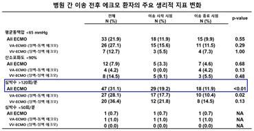 이번 연구는 중증환자 전문이송팀이 수행한 병원 간 이송 과정에서 에크모 환자의 생리적 상태가 실제로 어떻게 변화하는지를 확인하기 위해 진행됐다.