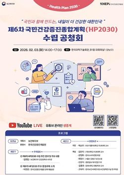 보건복지부와 한국건강증진개발원이 2월 3일 한국과학기술회관 대회의실에서 ‘제6차 국민건강증진종합계획(2026~2030, Health Plan 2030)’ 수립을 위한 공청회를 개최했다.