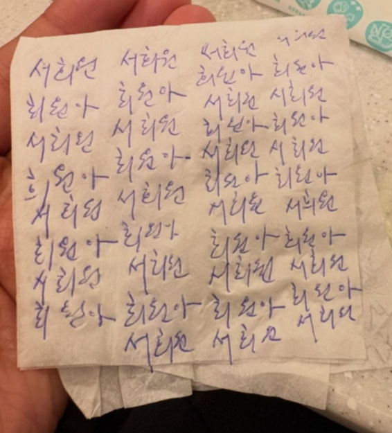 이어 “정리하러 그 자리에 가보니 ‘서희원’이라 쓴 종이가 보였다. 쓰레기로 버려질까 싶어 챙겨놨다”고 적었다. 강원래는 김나영의 ‘봄 내음보다 너를’ 가사도 함께 남겼다.
