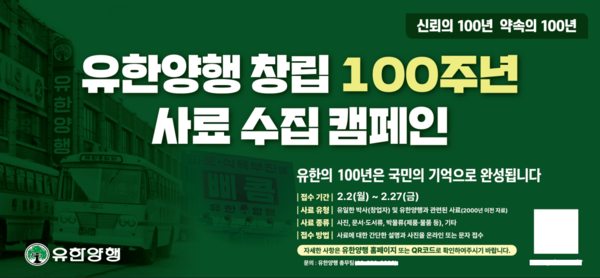 유한양행 관계자는 "유한양행의 100년은 한 기업의 역사를 넘어 사회적 책임과 신뢰의 가치를 실천해온 시간"이라며 "이번 캠페인을 통해 국민과 함께 유한의 역사를 되돌아보고 다음 100년을 향한 의미 있는 기록을 남기고자 한다"고 말했다.