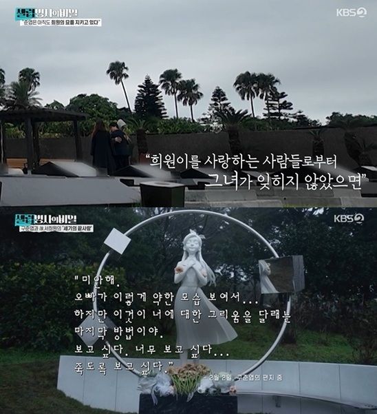구준엽은 제작진에게 "희원이를 사랑하는 사람들로부터 그녀가 잊히지 않았으면 좋겠다"는 마음을 밝혔다고 해 패널들을 눈물짓게 했다.