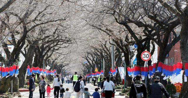 제17회 전농로 왕벚꽃 축제가 개막한 오전 제주시 전농로 모습. / 뉴스1