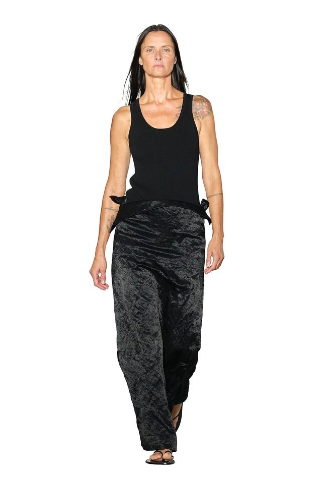 이번 컬렉션에서 구조의 부재는 의도된 것이었다. 이 옷들은 그 모든 것을 내려놓는 데 관한 이야기였다. 최근 들어 점점 찾기 힘들어진 새로운 자극, 부담에서 벗어나 아무것에도 얽매이지 않은 상태에 가까워지려는 갈망 말이다.
