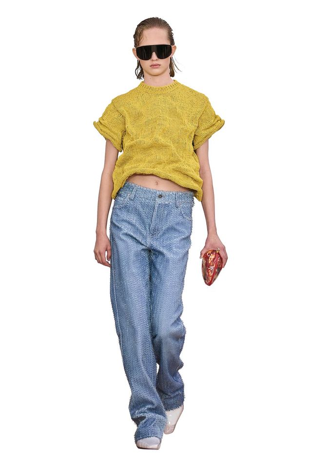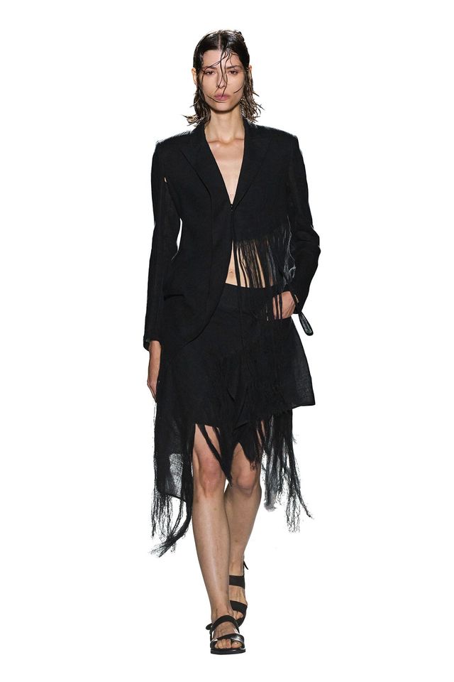 허리선이 말 그대로 급격히 내려간 흐름도 보인다. 이는 마티유 블라지가 선보인 샤넬 데뷔 컬렉션의 유려한 드롭 웨이스트 실루엣에서 분명히 드러났고, 조머와 토리셰주 같은 신진 레이블에선 보다 기묘한 방식으로 변주됐다. 특히 토리셰주에서는 모델의 몸을 가로질러 꿰매 내려간 듯한 로 슬렁 스커트가 등장했다. 이에 대해 디자이너 토리셰주는 “각각의 의상은 인식 가능하면서도 이질적인 모순”이라 설명했다. 점점 더 초현실적으로 변해가는 일상의 불편함을 마주하게 된다는 의미다. 그녀는 피날레 배경음악을 아웃캐스트의 ‘The Whole World’로 장식했다. 흐름에 몸을 맡기라는 메시지를 담은 곡으로, 마치 선언처럼 느껴졌다.