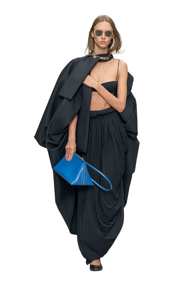 보테가 베네타의 크리에이티브 디렉터로 데뷔한 루이즈 트로터는 백스테이지에서 “캔버스 위에 레이어링해 몸에서 흘러내리듯 떨어지도록 했다”고 설명한 드레스 여러 벌을 선보였다. 실루엣 자체는 비교적 무게감이 있었지만, 그 룩들은 컬렉션 전반에 분명 해방된 공기를 더했다. 해방은 다리오 비탈레의 베르사체 데뷔 컬렉션에서도 핵심 키워드였다. 다만 그의 자유는 좀 더 성적으로 충전되고 퀴어한 방향이었다. 반쯤 열어둔 지퍼, 풀어놓은 벨트 같은 디테일을 통해. 이 컬렉션은 창립자 지아니 베르사체가 보여준 1980년대의 거리낌 없는 미학을 향한 헌사였다. 밤새 춤추고 나온 듯한 차림이 궁극의 글래머였던 시절 말이다. 로에베에서의 첫 시즌, 잭 맥컬로와 라자로 에르난데스는 마치 돌풍이 상체를 스쳐 지나간 듯 부풀어 오른 셔츠를 선보였다. 어거스트 배런은 매거진 〈올인〉에서 출발한 인디 레이블로, 그 특유의 시선 아래 트래드 와이프(trad wife, 자녀 여러 명을 기르며 전통적 여성 역할에만 복무하는 아내) 이미지를 장난스럽게 비틀어 폭탄적 존재로 재해석했다. 단추를 풀고 한데 뭉친 카디건에 1950년대풍 파티 스커트를 매치하고, 머리는 기이하게 말아 올린 컬로 연출한 모습이었다.