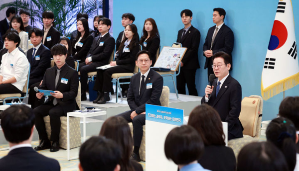 이재명 대통령은 5일 오전 청와대 본관에서 대통령과학장학생과 국제과학올림피아드 수상자를 초청해 '제12회 미래과학자와의 대화'를 주재하고 "과학기술은 그 나라 역량 자체"라며 "과학기술을 존중하고 투자하고 과학 기술인들이 인정받는 사회여야 미래가 있다"고 격려했다.