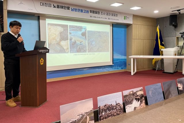 5일 해양시민과학센터 제주도의회 도민카페에서 ‘제주 남방큰돌고래 서식지 위협요인과 관리 방안 제안’에 대해 발표했다. 양유리기자