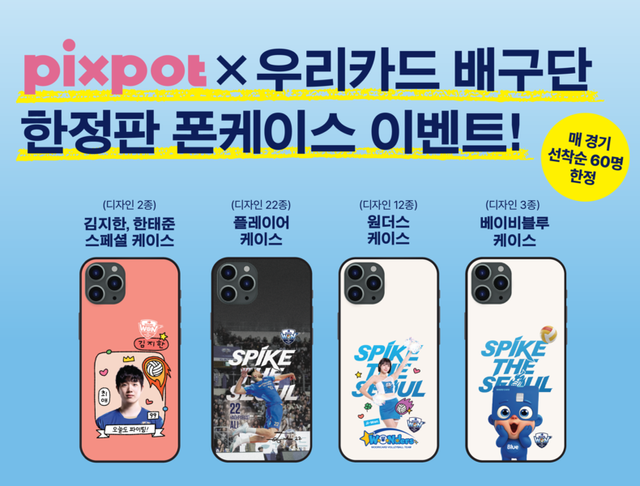 [일요시사 취재2팀] 김해웅 기자 = 국내 최초 나만의 스마트폰 케이스 제작 자판기인 ‘픽스팟(PIXPOT)’이 서울 우리카드 우리WON 프로배구단과 스폰서십 계약을 체결하고, 홈 팬들을 위한 특별한 한정판 굿즈 이벤트를 진행한다고 밝혔다.