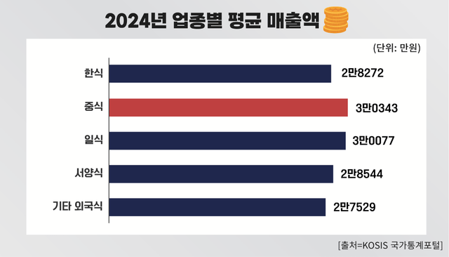 중국 식음료 프랜차이즈의 잇단 상륙은 국내 외식 시장 지표에서도 확인된다. 지난 2024년 국가통계포털에 따르면 중식은 일식·한식·서양식을 제치고 외식 업종별 평균 매출 1위에 올랐다. 이는 하이디라오, 탕화쿵푸, 차백도 등 중국 프랜차이즈 브랜드들이 한국 소비자들의 선택을 받았다는 방증으로 풀이된다.