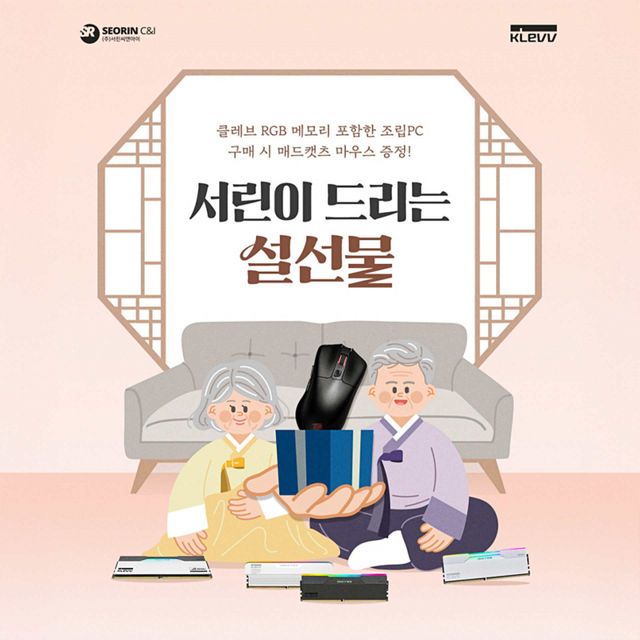 컴퓨터 부품 수입·유통 전문 업체 서린씨앤아이는 KLEVV DDR5 RGB 메모리가 장착된 조립 PC 구매 고객에게 매드캣츠 MOJO M2 마우스를 증정하는 프로모션을 진행한다.