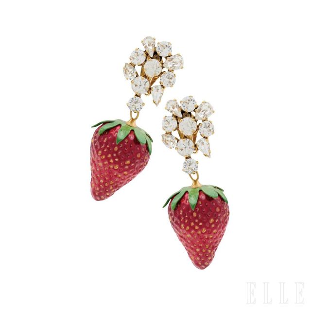 탐스러운 스트로베리 모티프의 크리스털 이어링은 2백65만원, Saint Laurent by Anthony Vaccarello.