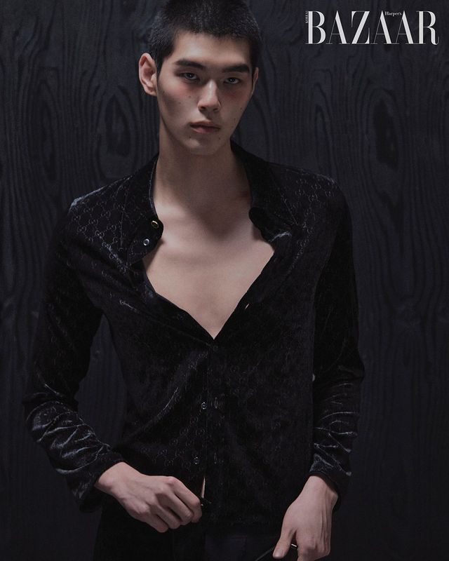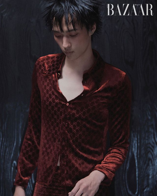 아래쪽 페이지: 벨벳 셔츠·팬츠 세트업은 Gucci.
