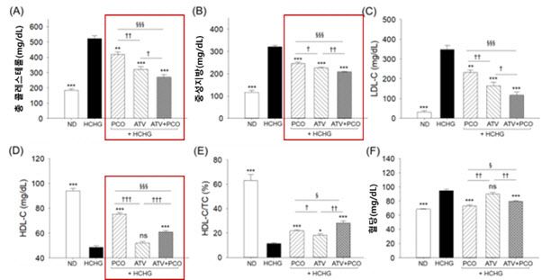 또한, 혈액 내의 지질과 산화물 농도를 비교했을 때, 아토바스타틴 단독군보다 폴리코사놀과의 병용 투여군에서 총콜레스테롤과 중성지방, LDL콜레스테롤이 더 크게 감소해 시너지의 효과를 나타냈다. 특히, 아토바스타틴을 단독으로 투여했을 때 좋은 콜레스테롤이라고 불리는 HDL수치가 감소한 것과는 달리, 폴리코사놀 병용 투여군의 HDL콜레스테롤 수치는 증가했다. HDL은 심혈관질환의 예방인자로 꼽힌다.