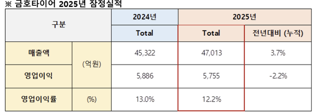금호타이어가 미국발(發) 관세 부과 등 비우호적인 경영 환경 속에서도 수익성 중심 전략을 통해 실적 방어에 성공했다.