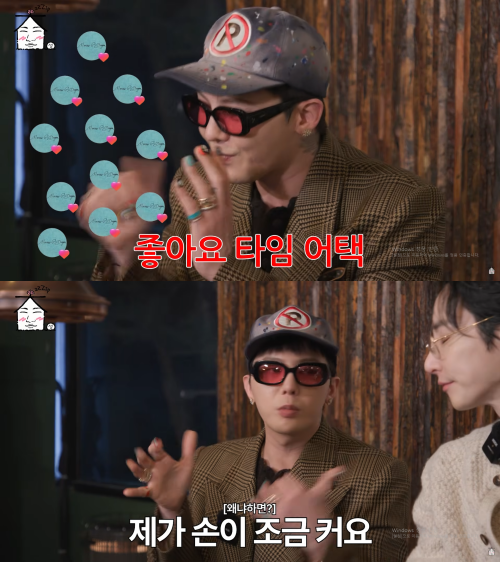 대화는 지드래곤의 인스타그램 ‘좋아요’ 습관으로 이어졌다. 대성이 “기준이 있냐”고 묻자 이수혁은 “가끔 실수도 하는데 결국 개수로 가는 것 아니냐”고 말했고, 지드래곤은 “일리가 있다”고 웃었다. 그러면서 “시작은 제 홍보 차원이었는데 금손 팬분들이 많았다. 응원해주시는 게 감사해서 누르게 됐다”고 밝혔다.
