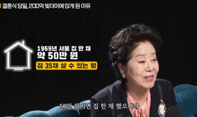 이어 “그 당시 1750만원이면 어느 정도였나?”라는 질문에 선우용여는 “요즘 가치로 치면 200억 이상이다. 1969년도 서울 집 한 채가 약 50만 원이었다”라고 어마어마한 빚을 떠안아야 했음을 언급했다. 그러면서 “그래도 저는 그때 그게 위기라고 생각하지 않았다. 당연히 나한테 닥치는 일이구나 생각하고 겁이 안 났다. 나는 결혼하면 탤런트 안 하려고 했는데 돈을 벌어야 하니까 계속 해야 했다. 그때 ‘아, 이거는 탤런트, 인기 스타가 아니라 직업이다’ 생각했다. 출산 3일 만에 녹화에 나가기도 했다”라고 닥치는 대로 일을 하며 열심히 살았던 당시를 돌아봤다. “그 빚을 언제 다 갚았나?”라는 질문에 선우용여는 “78년 그 정도 됐을 때 청산했다”라며 거의 10년이 걸렸다고 털어놨다.